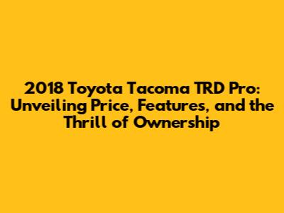 Hey there, gearheads and truck enthusiasts! Today, we're diving deep into the world of the 2018 Toyota Tacoma TRD Pro, a beast of a machine that's been turning heads and conquering trails for years. We're going to break down everything you need to know, from the all-important 2018 Toyota Tacoma TRD Pro price to its rugged features and why this truck might just be your perfect adventure companion. So, buckle up, because we're about to embark on a journey through the heart of off-road prowess and Toyota reliability!