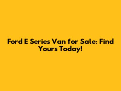 Ford E Series Van For Sale: Find Yours Today!